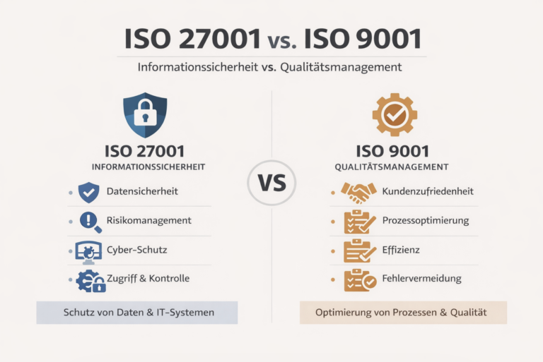 Die wichtigsten Unterschiede einfach erklärt Wer nach einer passenden Zertifizierung für das eigene Unternehmen sucht, stößt früher oder später auf zwei bekannte Standards: ISO 27001 und ISO 9001. Beide Normen sind international etabliert, verfolgen aber unterschiedliche Ziele. Während ISO 9001…